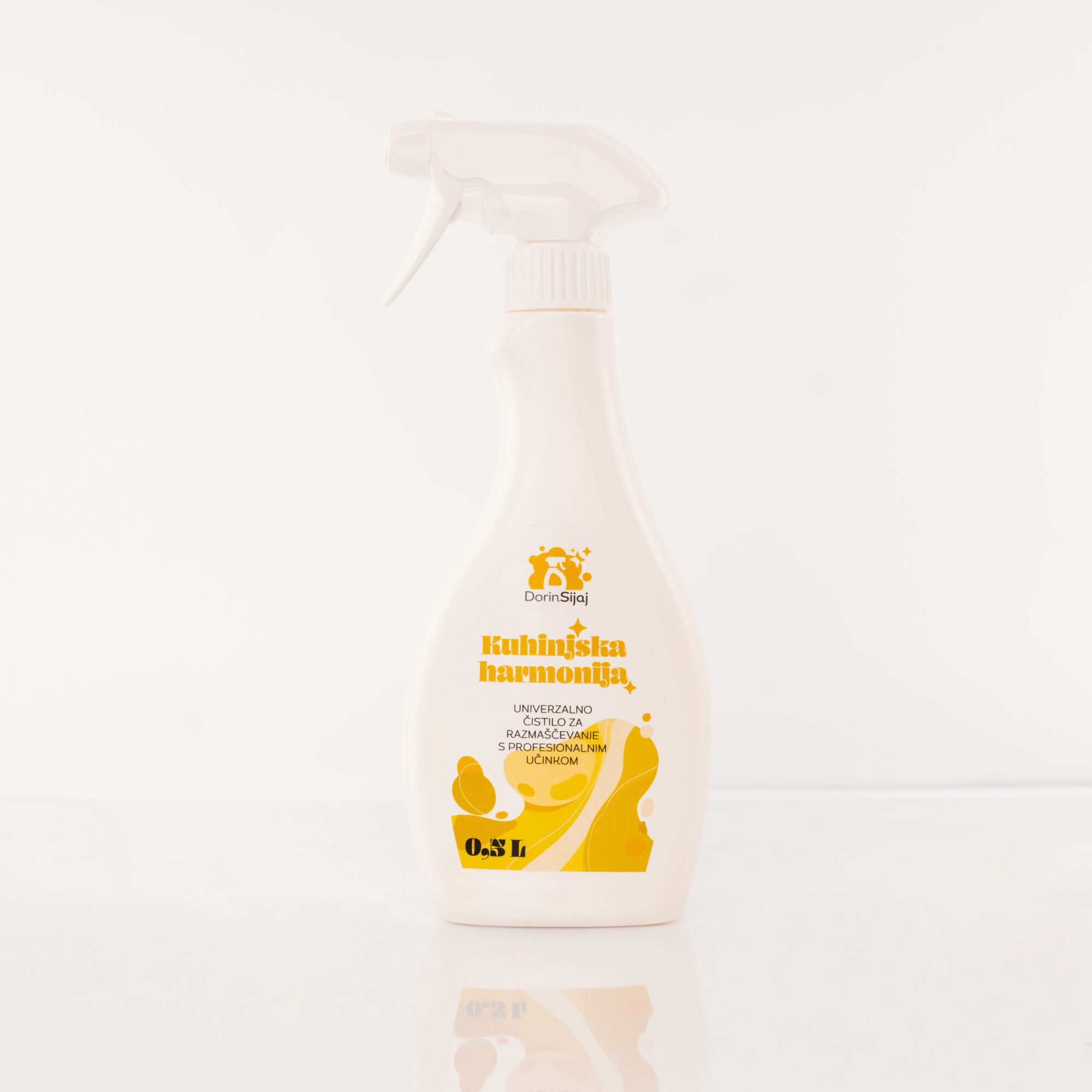 - Razmaščevalno čistilo, Kuhinjska harmonija (0,5 l) – močno čistilo za kuhinjo, ki učinkovito odstranjuje maščobo, olje in zapečene ostanke. Idealno za kuhinjske površine, nape in plošče.