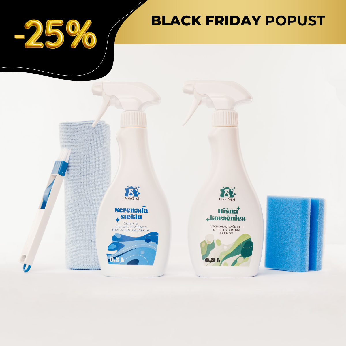 K vsakemu setu je dodana zahvalna kartica, na kateri je QR koda, kjer so zbrani naši najljubši čistilni triki za lažje in hitrejše čiščenje, samo za vas.