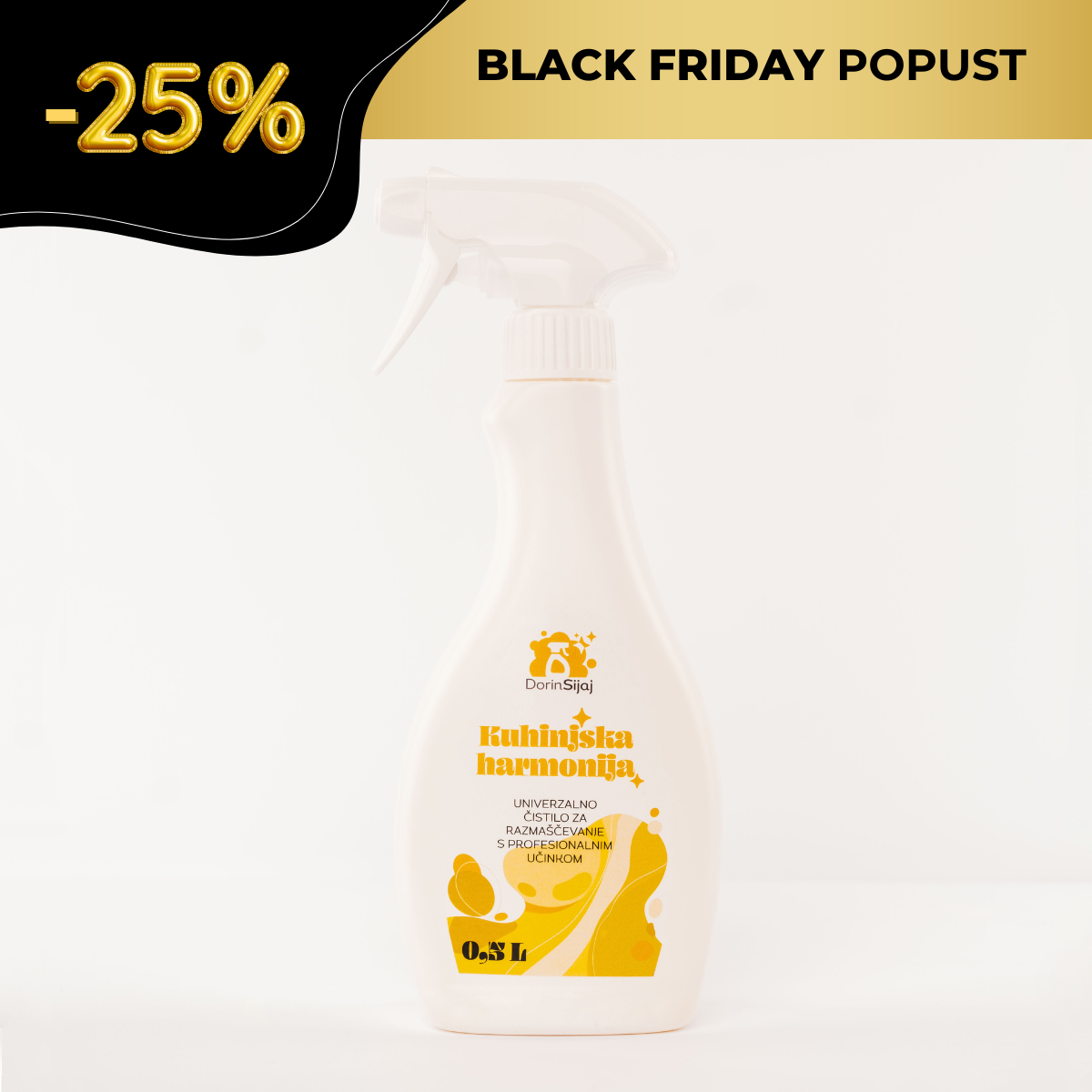 Sestava čistila je zasnovana posebej za učinkovito spopadanje z mastnimi in splošno umazanimi površinami (npr. hladilnika, nape, filtrov, indukcijska plošča, stenske ploščice v kuhinji in tudi umazanija na okenskih okvirjih …).